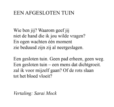 Publication of my poem ‘Locked Garden’ in: Rachel de dichteres (Amphora Books Publisher)