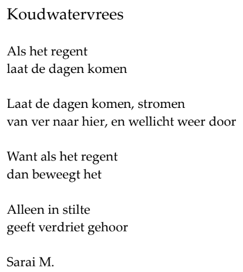 Publication of my poem ‘Cold feet’ in: Piekerlicht. This is a bundle of poems published in Belgium, with a focus on poems concerning resilience.